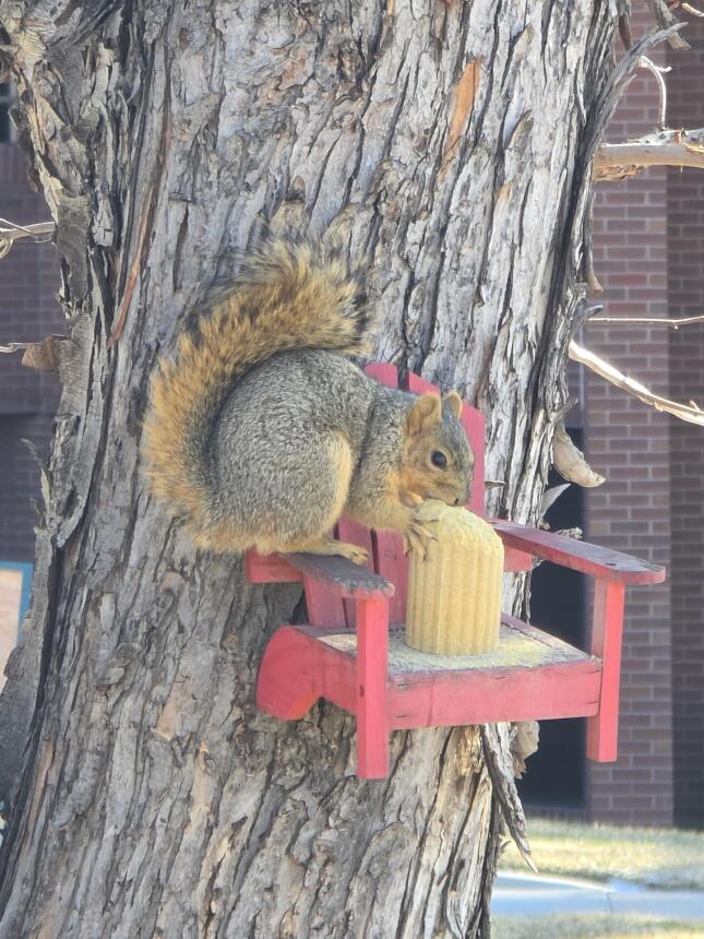 Despite his mischief, Wally is very much loved. He now has a brand new squirrel house and we make sure he is well stocked with snacks, just like our bird friends. His daily presence brings laughter, endless stories and photos, and a sense of connection to the wildlife that shares our space.